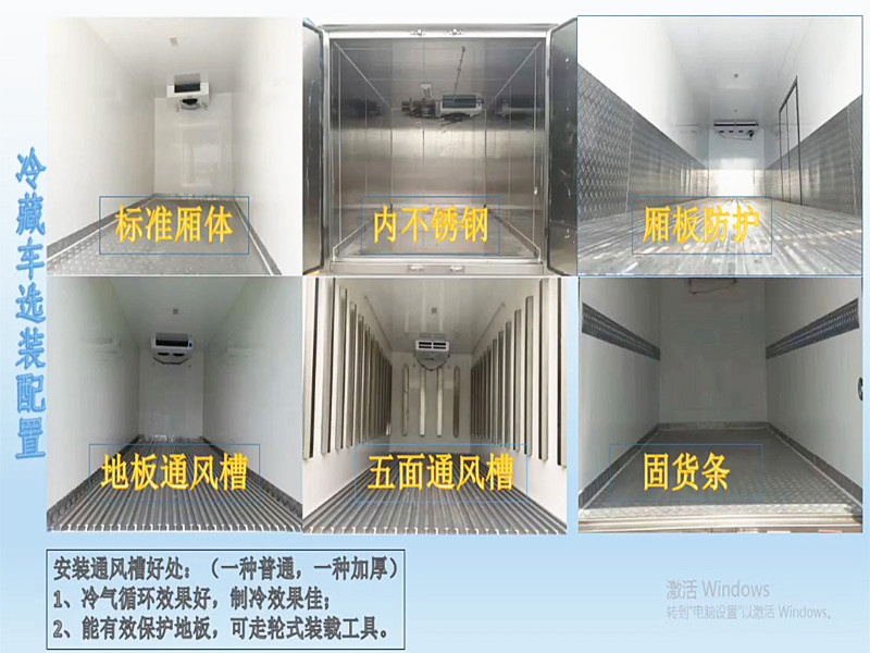 | 廂體配置:采用我公司液壓吸附一體成型生產線制造,保溫性能達到國家A級標準,廂體內外面料采用最新款納米玻璃鋼(不吸光、隔熱性好、硬度強、抗氧化),廂體厚度為8cm,內襯骨架為防銹處理武鋼優質輕鋼型材,保溫材料為無空隙填充聚氨酯發泡,廂體底部為鋁合金花紋板或選平面納米玻璃鋼,廂體采用鍍鋅不銹鋼包角,加厚型鋁合金包邊,后門框為不銹鋼,加厚型不銹鋼后門合頁及鎖件,廂體內部采用LED照明燈及廂體示寬燈。 選裝冷機:可根據客戶的用車需求選擇不同的機組,客戶可選-5℃、-10℃、-15℃、-18至-20℃冷藏機組 ,冷藏機組品牌有國內大品牌 信凱利、冰利、韓亞、開冷、漢雪、華泰、凱雪、易德、凱利.等冷藏機組,進口冷藏機組品牌有:美國開利、美國冷王。冷藏機組分為獨立機組和分體機組!根據您的用車需求推薦合適的冷藏機組! 該車型可選裝“制冷+加熱”雙溫機組(控制溫度范圍為+20℃至-18℃)可用于東北地區及內蒙 新疆 西藏等嚴寒地區。 選裝配置:導軌肉鉤、T型通風槽、右側開側門、溫度實時監控帶打印裝置、裝海鮮廂體內部面料必須選裝不銹鋼制造、可選裝12V-24V外接電源(車輛在停止時,廂體通過外接電源進行制冷)。